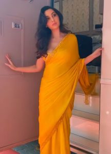 نورا فتحی سوشل میڈیا پر کافی ایکٹیو رہتی ہیں اور آئے روز اپنی نئی تصاویر اور ویڈیوز شیئر کرتی رہتی ہیں۔ اداکارہ نے حال ہی میں ایک ویڈیو شیئر کی ہے جس میں نورا فتحی پیلی ساڑھی پہنے اپنی وینیٹی وین سے باہر نکلتی ہوئی نظر آرہی ہیں۔