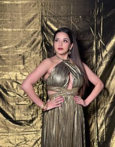 شمری گولڈن ڈریس میں مونالیسا کی ان تصاویر کو کافی پسند کیا جا رہا ہے، جن پر یوزرس آگ والے ایموجی بھیج رہے ہیں۔تصاویر میں اداکارہ کو اپنے فگر کو فلاؤنٹ کرتے دیکھا جا سکتا ہے۔