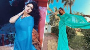 سری دیوی کے آئیکانک لک کو انکتا لوکھنڈے نے کیا کاپی، نیلی ساڑی میں اداکارہ کو دیکھ کر فینس حیران