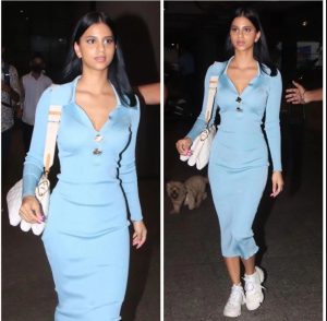 سہانا خان اسکائی بلیو باڈی کان ڈریس میں کافی گلیمرس اور خوبصورت نظر آئیں ۔ ان کی تصاویر اور ویڈیوز سوشل میڈیا پر جم کر وائرل ہورہے ہیں۔