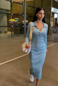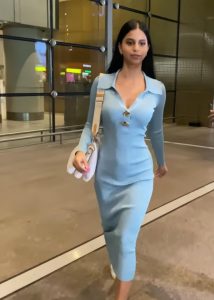 اس دوران سہانا خان کا ایک اور لک سوشل میڈیا پر چھایا ہوا ہے ۔ وہ اپنے ممبئی ایئرپورٹ والے لک کو لے کر موضوع بحث بنی ہوئی ہیں ۔ سہانا خان اسکائی بلیو باڈی کان ڈریس میں کافی گلیمرس اور خوبصورت نظر آئیں ۔ ان کی تصاویر اور ویڈیوز سوشل میڈیا پر جم کر وائرل ہورہے ہیں۔