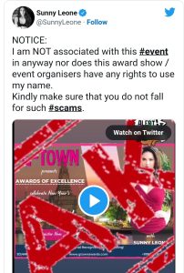 سنی لیونی نے اپنے فینس کو کیا خبردار، ان کے نام کا استعمال کر کے ہورہا ہے فراڈ