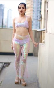 ویڈیو میں عرفی کسی ہوٹل کی لابی میں نظر آرہی ہیں اور انہوں نے پنک کلر کی بکنی پہن رکھی ہے ۔ اپنی لائٹ پنک بکنی پر عرفی نے ٹرانسپیرنٹ بیل باٹم پینٹ پہن رکھی ہے ۔ اس پینٹ کو دیکھ کر لگتا ہے کہ یہ پلاسٹک سے بنی ہے ۔