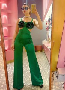اسٹائلش گرین جمپر سوڈ سے اروشی روتیلا کا لک ان کے فینس کو کافی پسند آرہا ہے ۔